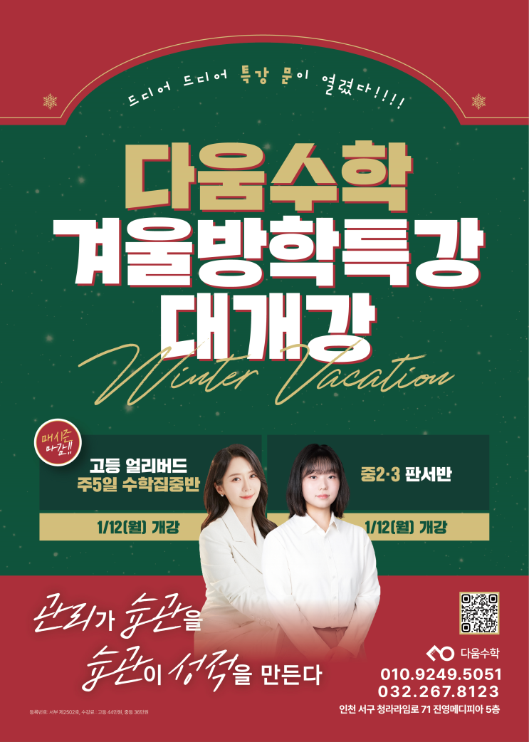 수미사 중계관] 은행사거리 수학학원 겨울방학 특강안내