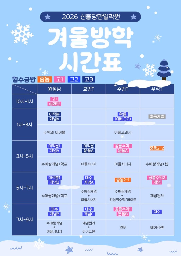 [신불당한일학원]2026년 겨울방학 시간표 안내