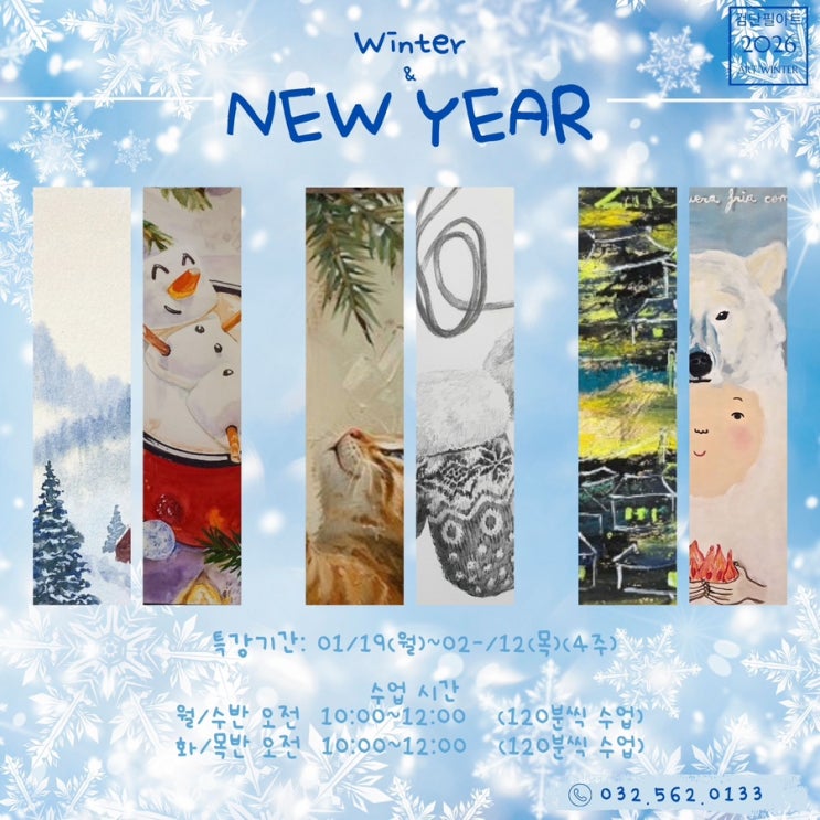안녕하세요, 검단필아트입니다 2026년 겨울방학 동안 아이들이 가장 크게 성장할 수 있는 스킬 향상 미술 특강 + 만들기 원데이 클래스가 함께 오픈되었습니다! 이번 겨울은 그림 실력 업 겨울·뉴이어 감성 작품 ️ 창의·입체 만들기 원데이 클래스 까지 한 번에 경험할 수 시간으로 가득 준비했어요!! 겨울방학 정규 특강 특강 기간 01/19(월) ~ 02/13목) ⏰ 오전 10:00 ~ 12:00 (120분) 요일 선택 가능 월/수/금 화/목 ※ 개인별 레벨에 따라 난이도 조절됩니다. ※ 재료비/포트폴리오/차량비/간식 포함 ※ 4명 미만 시 반 개설이 어려울 수 있습니다. ✨ 재원생은 전 프로그램 5% 할인 ✨ LITTLE SNOW (기....... <img src="https://blogthumb.pstatic.net/MjAyNTEyMTNfOTgg/MDAxNzY1NTYzNjE0MjAz.4xnDdYhZcKNyfq7R_EqW4PAzpS6eMBnvF_lTOIFx2uEg.L6zgSyxkXuFMn6VZXWK5orFO7w5SPAmLBOL4mPU-Gz8g.JPEG/IMG%A3%DF0826.JPG?type=s3" />