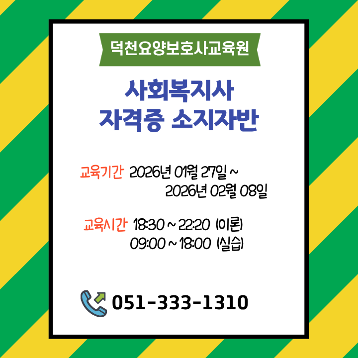 [덕천요양보호사교육원]사회복지사자격증 소지자반 개강안내