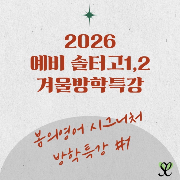 2026 솔터고 겨울방학 특강 안내 1. 대상: 솔터고 예비 1, 2 학생 2. 특강 내용: 서술형과 어법으로 구성된 특강은 우선적으로 솔터고 5개년 서술형 기출 문제를 학습하며 서술형의 틀을 이해하고 미리 준비할 수 있는 기회를 갖게 됩니다. 또한 기출경향에 따른 어법문제를 다루며 솔터고 내신에서 어떤 학습이 세부적으로 필요한가에 대한 필요성을 직접 피부에 와닿는 수업이 될 것입니다. 3. 특강 일정: 2026년 1월 5일 시작 1,2월 2개월간의 분량으로 개인별 스케줄을 잡아 진행. 1월8회 2월8회 총 16회 수업으로 상세 시간 및 일정은 개인별 협의. 4. 특강료: 재원생 315,000(1개월 기준) 비재원생 350,000 (1개월기준) 5. 개별 특강의 강....... <img src="https://blogthumb.pstatic.net/MjAyNTEyMTZfOTgg/MDAxNzY1ODcwMDU3MzY5.NZJVqmVMIPzV9yiKvYs_sZvMAJc7XuLsaD9J1wHhaTkg.JHWwMeAq6rheN543uWQY8qpbcsnUg_YWoxDU4Gh2Zjkg.JPEG/900%A3%DF%C1%A6%B8%F1%C0%BB%A3%AD%C0%D4%B7%C2%C7%D8%C1%D6%BC%BC%BF%E4%A3%DF%A3%AD001%A3%A88%A3%A9.jpg?type=s3" />