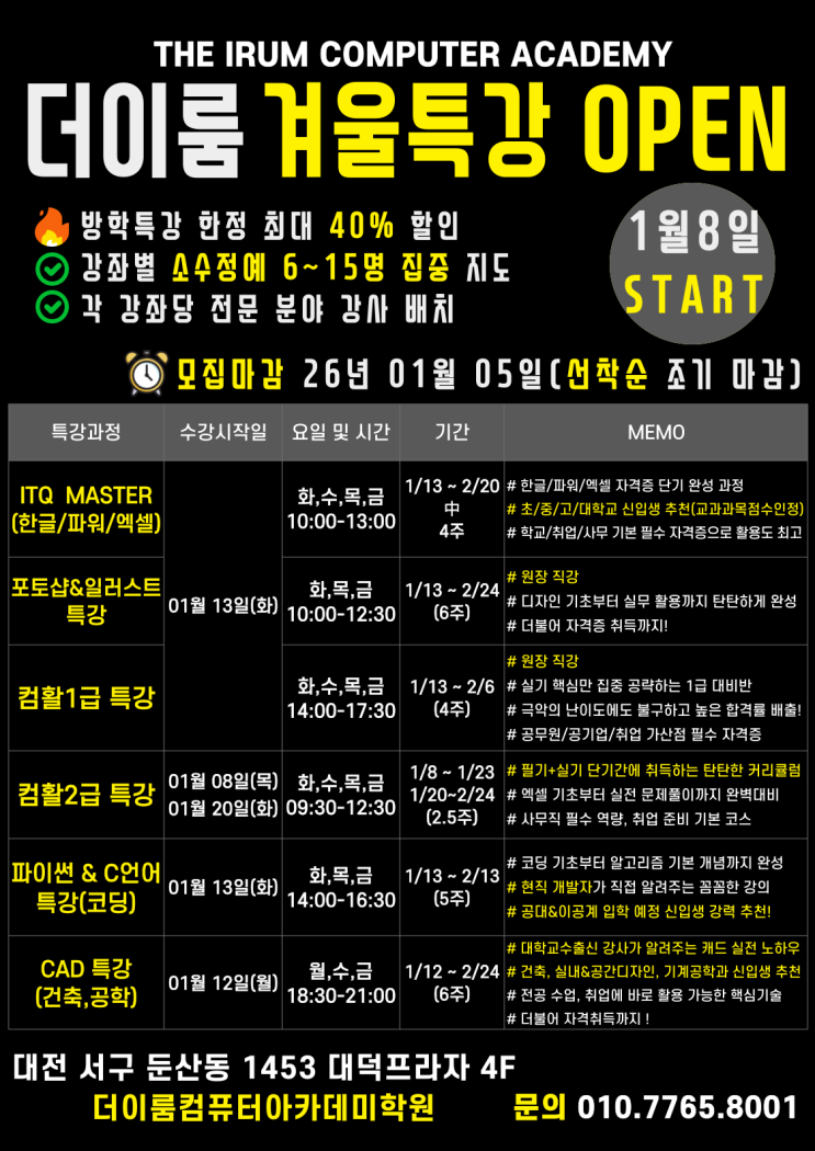 [더이룸컴퓨터아카데미]★26년 1,2월 겨울방학특강 안내★