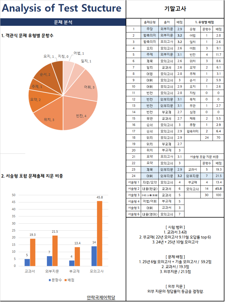 [안락국제어학당 고등부] [학산여고 1학년 2학기 기말고사 분석]