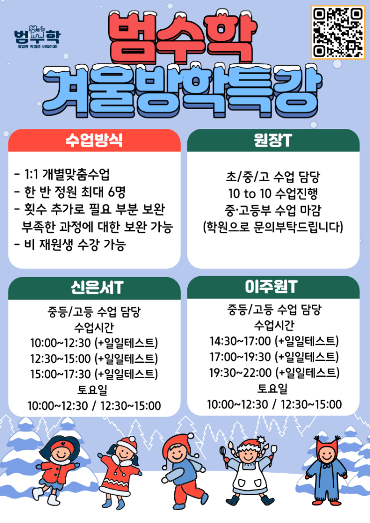 [위례수학학원/겨울방학특강] ☃️범수학 겨울방학 특강 안내 및 담당 선생님 소개☃️