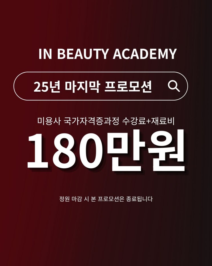 2025년의 마지막 달 12월이 다가왔습니다. 26년도 국가자격증 취득을 준비하는 미용인들을 위한 2025년 마지막 특별가 프로모션!! 안녕하세요! 제대로된 교육으로 가치있는 성장을 이끄는 제주미용학원 인뷰티아카데미입니다. 25년의 마지막! 올해 계획했던 목표들은 잘 마무리하셨나요??? 미용에 관심이 있지만 망설였던 25년이였다면 26년에는 인뷰티아카데미와 미용사자격증 도전! 어떠세요?? ▶최상의 교육 환경을 위한 소수정예 수업 ▶최단시간 합격이라는 목표로 진행되는 실전 모의고사 ▶제주 유일 대기 수강 시스템을 통한 수강예약 ▶전 과정 1대1 개별 진도 & 수강생 맞춤 커리큘럼 ▶자체제작 교재를 통한 체계적인 교육 프로그....... <img src="https://blogthumb.pstatic.net/MjAyNTEyMDFfMjEg/MDAxNzY0NTcyNDMxODIy.h0sz2Se4ExPjvEjmdTznuYQezV84sqD6Xu6tG4ybmJUg.hdAaq_Z7mHJC6TFwnZEKIdjNKXGeLA-Kksuynj3bzowg.JPEG/%BA%CE%BF%F8%C0%E5_%C0%CE%BD%BA%C5%B8_%282%29.jpg?type=s3" />