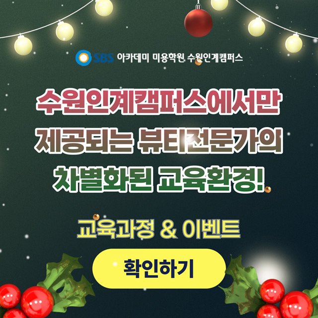 ※ 수원뷰티마스터는 SBS아카데미미용학원 수원인계캠퍼스 블로그 별명입니다. 제공자 : SBS아카데미미용학원 수원인계캠퍼스 안녕하세요 수원미용학원, SBS아카데미미용학원 수원인계캠퍼스 입니다! 오늘은 많은분들이 관심을 갖고 계시는 메이크업에 대해서 함께 알아볼까 합니다. 나이를 불문하고 성별을 무관하게 스스로를 가꾸기 시작하며 관리를 하는 시대인만큼 많은 분들께 꾸준하게 관심을 받고있는 메이크업 분야에 대하여 배우고자 수원메이크업학원 아카데미를 알아보시는 분들이 계시는데요. 오늘 수원메이크업학원 에서는 수업이 어떻게 진행되고 있는지 그리고 아카데미를 선택하실때 고려하여야 하는 필수사항들에 대하여 포스팅....... <img src="https://blogthumb.pstatic.net/MjAyNTEyMTJfMTY0/MDAxNzY1NTA0NTQ3NDUz.ye2LM8geCpsex6K6g6VFPNx0nyRIYXav2QZ9ec3YAd4g.KltEJ00q90yQBrcK37OyZQJs0HwxCcEEcZFgJTZRzAsg.JPEG/%C6%CB%BE%F7%B9%E8%B3%CA%C0%CE%B0%E8_12%BF%F9.jpg?type=s3" />