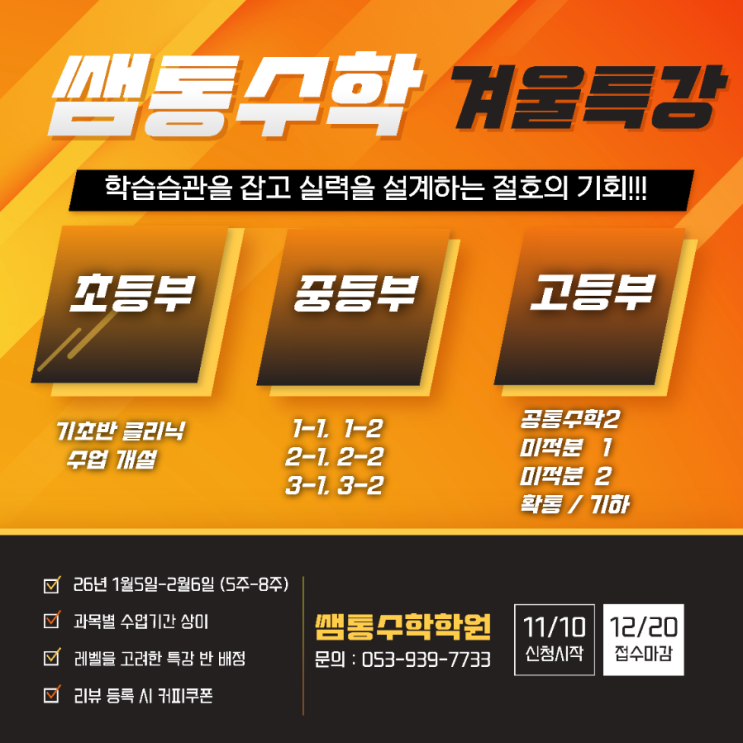 수미사 중계관] 은행사거리 수학학원 겨울방학 특강안내