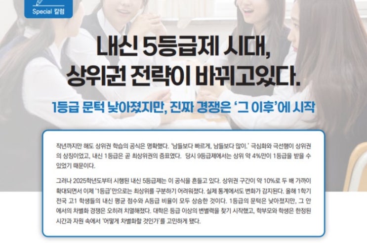 [마산 와이즈만] Special 칼럼 <내신 5등급제 시대, 상위권 전략이 바뀌고 있다>