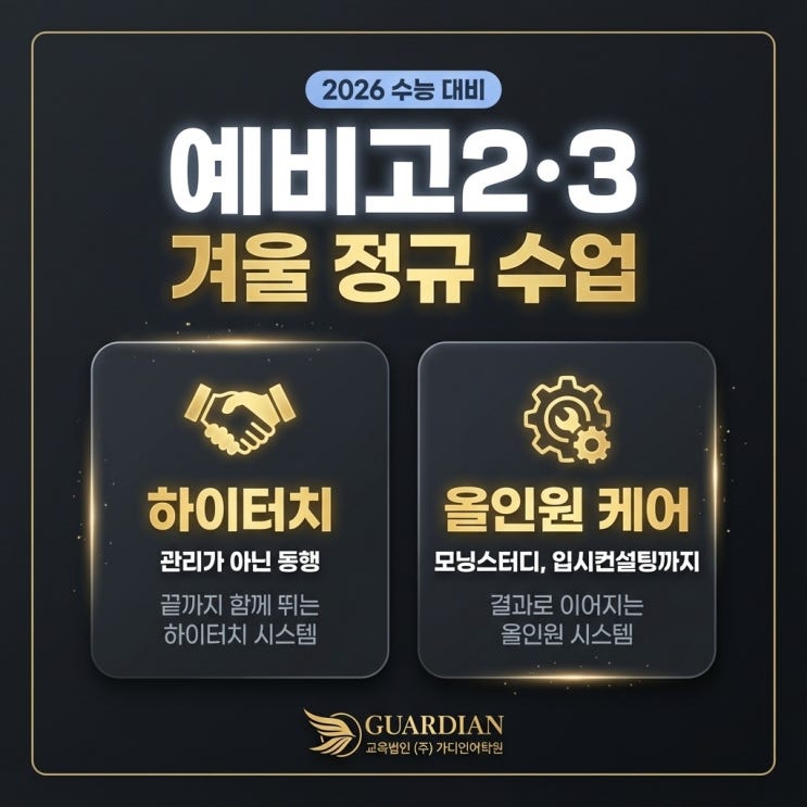 아래 모바일 안내장에서 선생님별 수업 특장점을 확인해주세요! :) ★고2-고3 정규 클래스 안내★ https://frolicking-crepe-1cadec.netlify.app/ 방학이 성적향상의 절호의 기회인데도 이상하게 방학이 지나면 반짝임을 잃는 친구들이 있습니다. 야심차게 혼자 정리해보겠다고 학군지를 경험해보겠다고 어수선하게 왔다갔다 하는 사이 학습의 연속성은 깨지고 아차하며 후회하는 동안 학기는 빠르게 지나가고 경쟁력에 틈이 생겨버립니다. 이런 안타까운 경우를 수없이 반복해서 목격하면서 완성도 높은 수업 뿐 아니라, 모닝스터디, 1대 1 입시컨설팅을 준비해 학생들이 방학을 정말 하나의 계기로 잘 활용할 수 있도록 만반의 준비를 하였습니....... <img src="https://blogthumb.pstatic.net/MjAyNTEyMTBfMTgy/MDAxNzY1MzU5MTc2NjYy.PabzIWG0Q0ia-SCU7NTAmEajmTrlbDgT2DjN9BiToeMg.p9-N6PGsgYONuto45w2Rfyj3tDX27AsE3YA-CXqheK0g.JPEG/%B0%ED%B5%EE%BA%CE_%B0%DC%BF%EF.jpg?type=s3" />