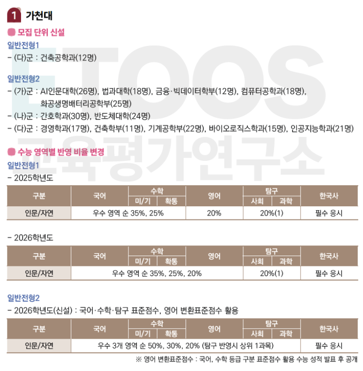 주요대학별 정시변화 Check Point 1 (가천~국민)