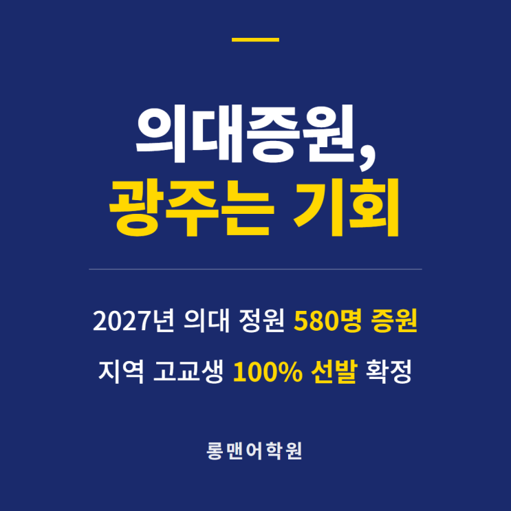 혼란스러운 입시 변화, 기회일까 위기일까? 매년 달라지는 입시 정책 때문에 학부모님들의 걱정이 이만저만이 아니실 겁니다. 특히 최근 발표된 '의대 증원'과 '지역의사제' 뉴스를 접하시고, 이것이 우리 아이에게 어떤 영향을 미칠지, 당장 무엇을 준비해야 할지 막막해하는 분들이 많습니다. 서울로 유학을 보내야 할지, 아니면 지역에 남아서 전략을 짜야 할지 고민이 깊어지는 시점입니다. 하지만 복잡한 뉴스 속에서 핵심만 파악한다면, 이번 변화는 우리 지역 학생들에게 전례 없는 기회가 될 수 있습니다. 2027년, 지역 고교생에게만 열리는 문 팩트부터 명확히 짚어드리겠습니다. 정부는 2027학년도부터 의과대학 모....... <img src="https://blogthumb.pstatic.net/MjAyNjAyMDNfMjE0/MDAxNzcwMTE4OTkwOTI1.vXNqG3fVWLySJ03pM1PtGcovN6k3uyI-LosProeCK8wg.rtV4dC1bGDnUP_UdBMZ4dnTcrgUuE08qYyLZ22QbkBUg.PNG/slide_final_0.png?type=s3" />