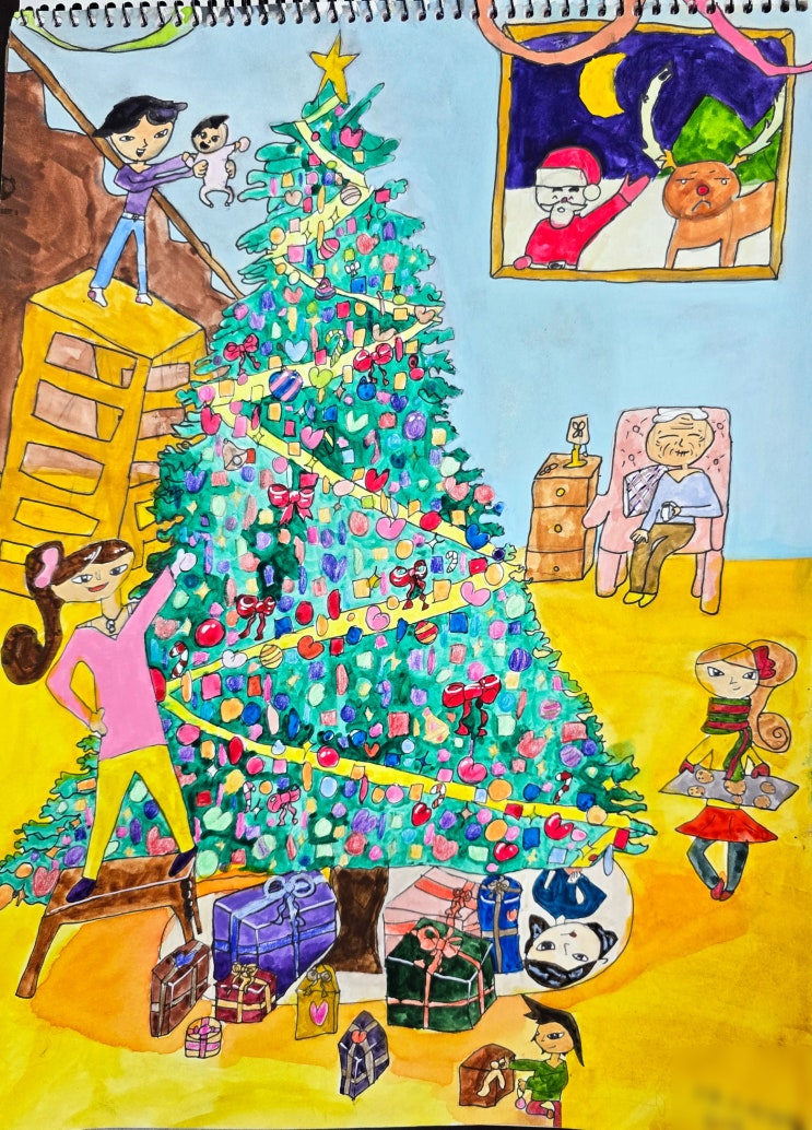 좋아하는 마음이 실력이되는 곳, 코코 미술 입니다. 금호동 미술 코코의 [초등미술]은 주체자가 아이들이기 때문에 그리고 싶은 그림을 그 어떠한 제약없이 마음것 그려갈 수 있답니다! 이번 그림작은 초등 3학년생의 그림작입니다. 정말 화려하고 따스함이 가득한 이번 그림은 겨울때 그렸었는데, 이 코코징이 이 트리색감을 코코만 보기에 매우 아까워 많이 늦은감이 있지만 포스팅합니다. (하지 않을수 없었던..ㅎㅎ) 트리의 장식 하나하나에 들어간 색의 변주와 공간을 채운 풍성한 색감이 정말 훌륭합니다! 정말 이 그림작의 완성도는 이 트리라고 단언합니다. 트리의 초록색 사이사이에 배친된 보라, 핑크, 파랑, 빨강의 리듬감이 그림의 완....... <img src="https://blogthumb.pstatic.net/MjAyNjAzMjVfMTIy/MDAxNzc0NDI0NDYxODU4.cT8lLmBhhS06_PBOt6_AbWkk3g1tjQkrcBxT4xIHYEwg.3LwYTVy-ietb1B72gM4L1HI9qlqhUu2vt5zLTbxn5kwg.JPEG/20260226_214931.jpg?type=s3" />