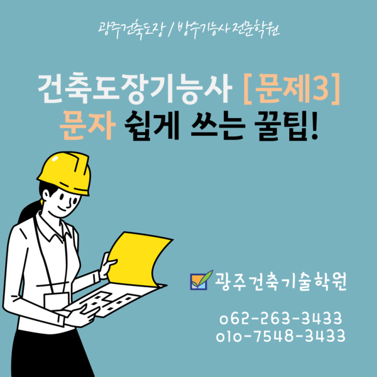 광주건축도장기능사 자격증 취득 전문학원 광주건축기술학원 입니다. 이제 접수가 마감되었죠~~ 모두 접수에 성공 하셨나요?? 성공 하신분들은 이제 광주건축기술학원으로 관심가져 주세요. 서두르셔서 상담 문의 주세요. 상담문의 063-252-3433 010-4191-3433 오늘은.. 건축도장기능사 시험에서 【과제3】문자 쉽게 쓰는 방법과 주의사항을 알려드릴께요~~ 그중 【과제3】의 핵심 포인트를 안내해 드릴꺼에요~~ 문제는 공개형이지만 매 시험때마다 달라진다는거.. 그래서 6글자 모두 연습을 해 두시는게 중요 합니다. 건축도장기능사 5가지 과제 과제1 : 수성페인트 과제2 : 유성페인트 과제3 : 문자 과제4 : 도형 과제5 : 그라데이션 [과제3] 문....... <img src="https://blogthumb.pstatic.net/MjAyNjAyMDZfNCAg/MDAxNzcwMzM3Njc5OTU2.fp4rJjH-LpyP73A8hOb2Ae3hhjfejyLVKx4hqbPdEHYg.l07Q0nfoRleHFBD2Vq3PHKW_B1X_NXo2FQxLDGCOBRAg.PNG/%B1%A4%C1%D6%B0%C7%C3%E0%B5%B5%C0%E5_%B1%A4%C1%D6%B0%C7%C3%E0%B5%B5%C0%E5%C0%FC%B9%AE%C7%D0%BF%F8_%B1%A4%C1%D6%B5%B5%C0%E5%C0%DA%B0%DD%C1%F5.png?type=s3" />