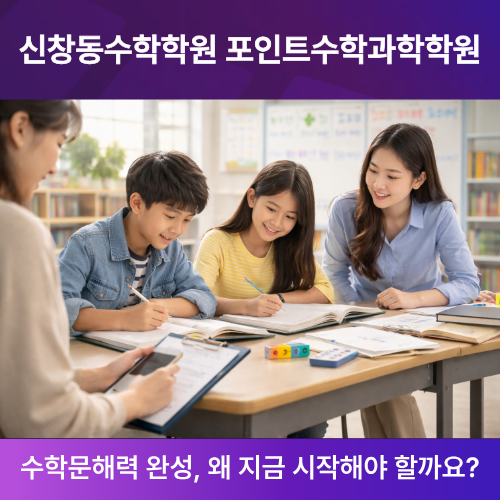 신창동수학학원 포인트수학과학학원 수학문해력 완성, 왜 지금 시작해야 할까요? 신창동수학학원을 찾고 계신가요? 단순히 문제를 많이 푸는 학원이 아닌, 아이 스스로 이해하고 설명할 수 있는 힘을 길러주는 곳을 찾고 있다면 신창동수학과학학원 포인트수학과학학원에서 그 해답을 찾으실 수 있습니다. 요즘 수학은 계산 능력만으로는 부족합니다. 문제를 읽고, 의미를 파악하고, 조건을 정리하고, 자신의 언어로 설명할 수 있는 힘, 바로 ‘수학문해력’이 핵심입니다. 왜 수학적 문해력이 중요한가요? 수학 성적이 오르지 않는 가장 큰 이유는 개념을 몰라서가 아니라 문제를 제대로 읽지 못하기 때문입니다. 긴 문장형 문제, 서술형 문제, ....... <img src="https://blogthumb.pstatic.net/MjAyNjAyMTRfMTIz/MDAxNzcxMDUwMTAwNjMw.7_tuDecwjcus-qTQKJDKt4ZnT0p7MF4c-uHMy91QvpIg.fCbGhqpFDL54UflTsGMd9c4WlTFIZVuHoFhREpw2d_og.PNG/%C1%A6%B8%F1%C0%BB_%C0%D4%B7%C2%C7%D8%C1%D6%BC%BC%BF%E4._%283%29.png?type=s3" />