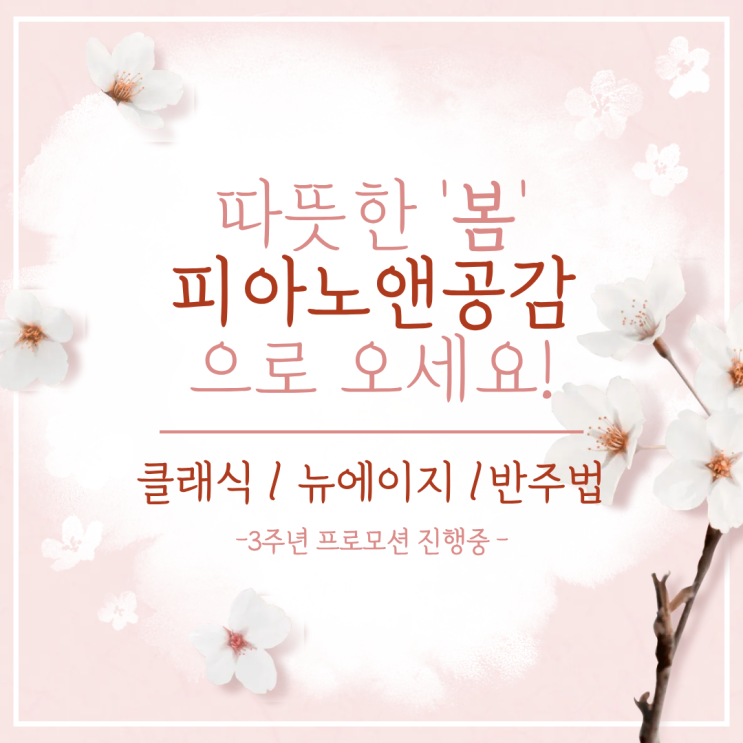 안녕하세요~ 피아노앤공감 입니다! :) 저희 피아노앤공감은 '성인 취미 전문' 피아노 학원으로 20대 이상 성인이라면 '누구든' 피아노를 배울 수 있는 학원입니다! :) 그런데 피아노,라는 취미이다 보니 어린아이 또는 상대적으로 젊은 20~30대 성인들만 배우는 것이라고 생각하는 분들이 계시는데요 전혀 그렇지 않습니다!! 피아노는 어릴 때 배워야 하지 않나요? 손가락이 마음처럼 움직이지 않으면 어떡하죠? 정말 많은 분들의 고민인 것 같습니다 물론, 악기라는 것을 처음 배우고 특히, 피아노가 처음이라면! 다른 악기들과 다르게 양손을 따로 눌러야 한다는 어려운 난관이 있을 수 있습니다 하지만 이건 너무 늦....... <img src="https://blogthumb.pstatic.net/MjAyNjAzMDZfMjMy/MDAxNzcyNzc5MjA1NTYx.5DSxtwepUD4mBd_RXIRS_Tc7ao-bPXify51KklRgeg0g.5KL3PJ9iHAfwBRl8aMyuGIQHoCwbuODOf3K6FXCj6oAg.PNG/%C1%A6%B8%F1%C0%BB_%C0%D4%B7%C2%C7%D8%C1%D6%BC%BC%BF%E4..png?type=s3" />