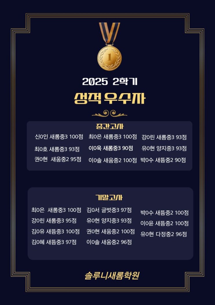 2025년 솔루니국어논술 새롬학원을 빛낸 친구들