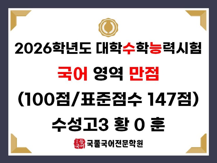 2026학년도 수능 국어 만점자(100점) 배출! 수원 정자동 천천동 국풀 국어 학원