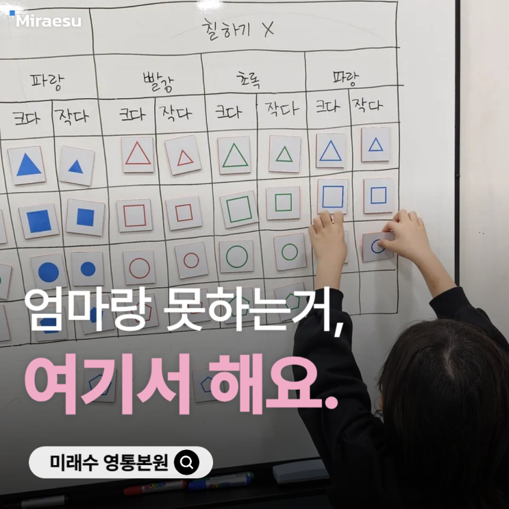 집에서 엄마가 해주기엔 어려운 수학이 있습니다. 아이에게 문제가 생겨서도 아니고, 엄마의 의지가 부족해서도 아닙니다. 아이를 가장 잘 아는 사람은 언제나 엄마이니까요. 다만 수학에는 사랑과 노력만으로는 해결되지 않는, 전문이 필요한 순간이 있습니다. 설명은 했는데 아이 표정이 밝지 않을 때, 몇 번을 다시 말해도 “모르겠어…”라는 말이 돌아올 때. 그 순간 엄마의 마음이 ‘내가 뭘 잘못하고 있나’로 향하는 건 너무나 자연스러운 일입니다. 미래수의 수업은 문제를 많이 푸는 수업이 아닙니다. 어두운 동굴 속에서 벽을 더듬듯 나아가는 탐구의 과정도, 생각하는 방법을 하나씩 알아가는 시간도, 내 생각을 말과 글로 꺼내는 연....... <img src="https://blogthumb.pstatic.net/MjAyNjAxMzBfMzAw/MDAxNzY5NzM5NjMzNjU0.xZswYJRffNy2flS_h8R2Gv0OPFpOcjhREl-f2qjpyhMg.lqCXvQaIFoh0LSWlkfwbkkCh53kqy2ep4YFxdvdhHf4g.PNG/%C0%CE%BD%BA%C5%B82026-001.png?type=s3" />