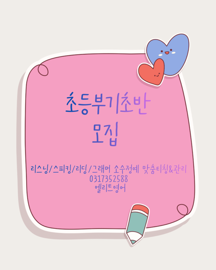 오늘 단대초 총회가 있는 날이라 간만에 홍보 준비를 했더니, 처음 학원 운영하던 때가 생각나네요. 그때 초등부터 가르친 아이들이 벌써 서강대, 건대, 한양대, 세종대, 아주대, 가천대 등등 여러 대학에 가고, 영어는 초등부부터 쭈욱~ 잘 배운 아이들은 거의 다 수능 1,2등급이 나왔습니다. 요즘은 성적때문에 고민하는 중등부 문의가 대부분인데, 영어는 초등부 때 처음 시작이 중요합니다. 뒤늦게 학교 성적때문에 고민하지 마시고, 초등학생 때 기초부터 차근차근 공부습관도 잡으면서 영어 말하고 듣기도 되고, 고등학생 되서 성적도 나오는 엘리트 학원만의 차별화된 수업과 함께 하실 초등부 학부모님들이 계시면 좋겠습니다. 엘리트학....... <img src="https://blogthumb.pstatic.net/MjAyNjAzMThfMTMg/MDAxNzczODA4MzU5MzE4.rQr8UzFqiaFm1D-cqRV8XyCavSG45dxtm3SDqYWAWl0g.uSVS4HdKyxZeddiAgM2_4w8UuT8yLW8JvH9cpITN-0kg.PNG/%C3%CA%B5%EE%BA%CE%B1%E2%C3%CA%B9%DD_%B8%F0%C1%FD.png?type=s3" />