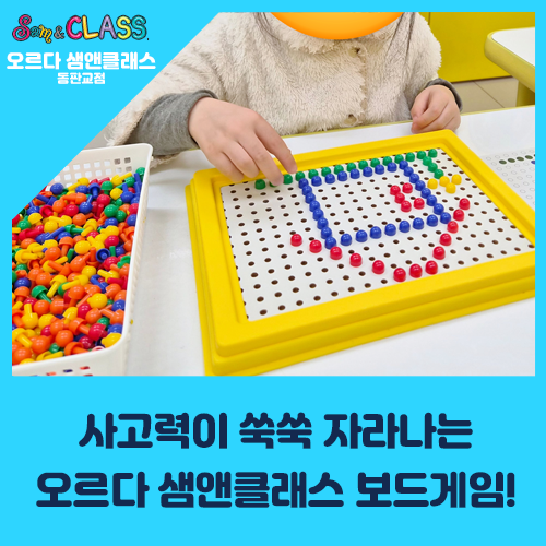 사고력이 쑥쑥 자라나는 오르다 샘앤클래스 보드게임! 병오년 새해가 밝았습니다☀️ 모두 새해 복 많이 받으세요! 새해에도 오르다 샘앤클래스에서는 아이들이 즐겁게 사고력을 키울 수 있는 수업이 준비되어 있습니다☺️ 덧셈 주사위로 주사위를 던지고 나온 수를 합하는 모습이 너무 즐거워 보이죠? 아이들에게 어렵게 느껴지는 수학을 보드게임에 접목시키면 수학도 재미있는 놀이가 됩니다 구슬 모자이크로 알맞은 위치에 여러 가지 색깔을 분별하여 집과 꽃을 만들어요~! 좋아하는 그림을 선택해서 구슬 모자이크를 만들다 보면 재미있는 활동 속에서 위치와 방향감각이 자라나요~! 작은 구슬 하나하나 집중하는 모습이 참 인상 깊죠....... <img src="https://blogthumb.pstatic.net/MjAyNjAxMTlfMTky/MDAxNzY4NzkzOTgxMjUw.YCv4Dyx3hCPxeqiY2GQBfeVCG23uaND9to-fNCN7LYQg.MRylnnlxg08gnbldUlbefGE6EAUxwNwjFjK-Eckwz5Mg.PNG/%BA%ED%B7%CE%B1%D7_%BD%E6%B3%D7%C0%CF_260119.png?type=s3" />