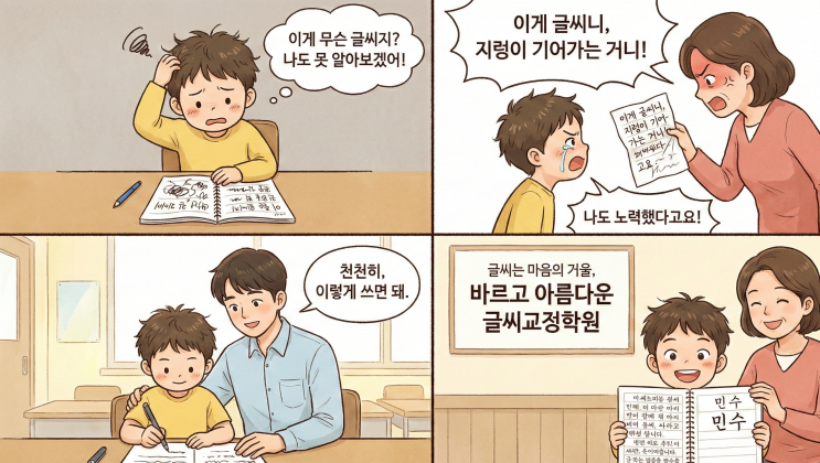 안녕하세요 바르고아름다운 글씨교정학원입니다. 새학기가 시작되거나 학년이 올라갈수록 우리 학부모님들의 걱정 중 하나가 바로 아이들의 알림장이나 공책 필기 상태입니다. "우리 아이는 머리는 좋은 것 같은데, 글씨가 너무 엉망이에요" "수학 문제를 풀 때 본인 글씨글 못 알아봐서 틀려요." 혹시 이런 고민을 가지고 있지는 않으신가요 ? 단순히 보기 싫은 글씨체 때문에 악필교정을 고민하시나요 ? 오늘은 글씨 쓰기가 단순한 손동작이 아니라 아이의 두뇌 발달과 학습 능력에 얼마나 치명적인 영향을 미치는지 이야기 해보려고 합니다. "똑똑한 아이는 손끝에서 만들어 진다" 이 말이 사실일까요 ? 1. 손....... <img src="https://blogthumb.pstatic.net/MjAyNjAxMjZfMTI2/MDAxNzY5NDE0MTkxOTUy.ORkNL3t3PW6jbvfjBr9AExr4kucB8Xm3BJyz1QaHAmog.psgiEUs__GOaxlhEW6y1sQp9rgZwz2l9HqMvpjys_scg.PNG/Gemini_Generated_Image_8q0qky8q0qky8q0q.png?type=s3" />