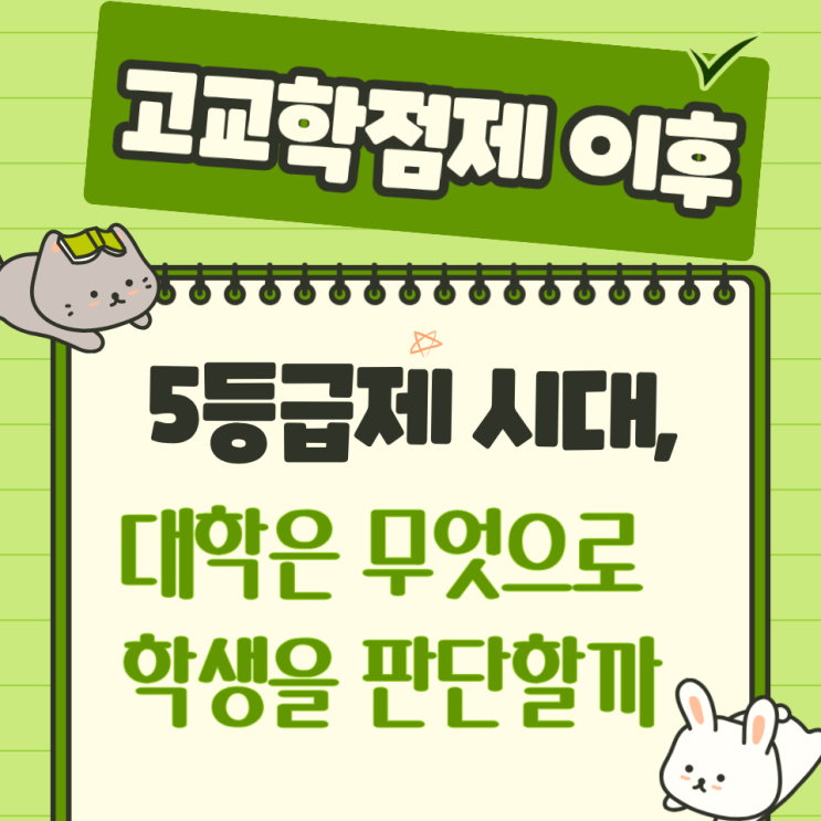 안녕하세요! 고교학점제 이야기가 나올 때마다 학부모님 상담에서 꼭 나오는 말이 있습니다. “제도는 바뀐다는데, 결국 성적 좋은 학생이 유리한 거 아닌가요?” “학종은 여전히 불확실해서 불안해요.” 이 질문이 나오는 이유는 분명합니다. 지금까지의 대입은 점수로 설명되는 구조였기 때문입니다. 하지만 2028 대입은 점수만으로는 설명되지 않는 구조로 바뀌고 있어요. 그 변화의 출발점이 바로 5등급제와 고교학점제입니다. 5등급제에 대해 가장 많이 하는 오해는 “변별력이 사라진다”는 말인데요. 하지만 실제로는 변별력을 없앤 것이 아니라 성적이 맡고 있던 역할을 줄인 것에 가깝다고 할 수 있어요. 9등급제에서는 성적이 곧 학생....... <img src="https://blogthumb.pstatic.net/MjAyNjAxMTlfMTQ2/MDAxNzY4ODAxMTUxNDU0.ogV7IDEOC6uum22lXsbJTDfPeUxYukF2c_he3rdQz-gg.L2yz6NGshZC7P6_wfCCHJNCR1h-B5QblG3D8zRuKQHYg.PNG/1.png?type=s3" />
