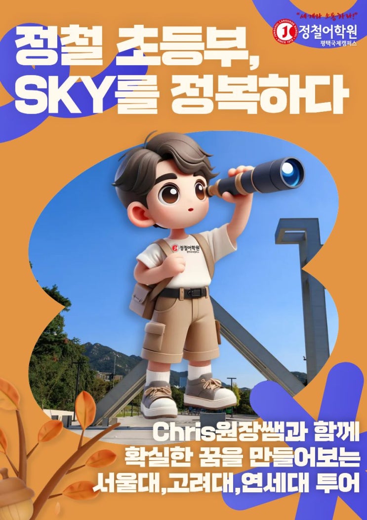 안녕하세요! Chris입니다❤️ 꿈을 향해 함께 걸어가는 학원, 정철어학원 평택국제캠퍼스 우리 학원에서는 영어, 수학만을 티칭하지 않습니다. 우리는 <꿈>을 향해 함께 걸어갑니다. 해외여행을 가면 그만큼 시야가 넓어지고 세상을 보는 눈이 달라지죠? 학생들에게 학교도 마찬가지 입니다. 그래서 우리학원은 매년 시그니처 투어로 <서울대/고려대/연세대> 투어를 자체운영하여 아이들이 직접 두 눈으로 교실/학교를 보고 꿈을 키워보는 시간을 갖습니다. 사진만 봐도 아이들이 재미있어하는 것이 눈에 보이시죠? 서울대 출신 Chris 평택국제정철 원장이 직접 운전하고 인솔하며 가이드하고, 고려대 출신 김종현 올림피아드수학 원....... <img src="https://blogthumb.pstatic.net/MjAyNjAyMDFfMTI3/MDAxNzY5OTA3MzM0MDQ4.tmnMPvk_C1Q-mG-8EiwL9-CyZAugSa8u_HNif68Vzq8g.mFFctSr01AjFCjQ1qnUUgsW00eyob60mdt2bymviRK8g.JPEG/1769905969452.jpg?type=s3" />