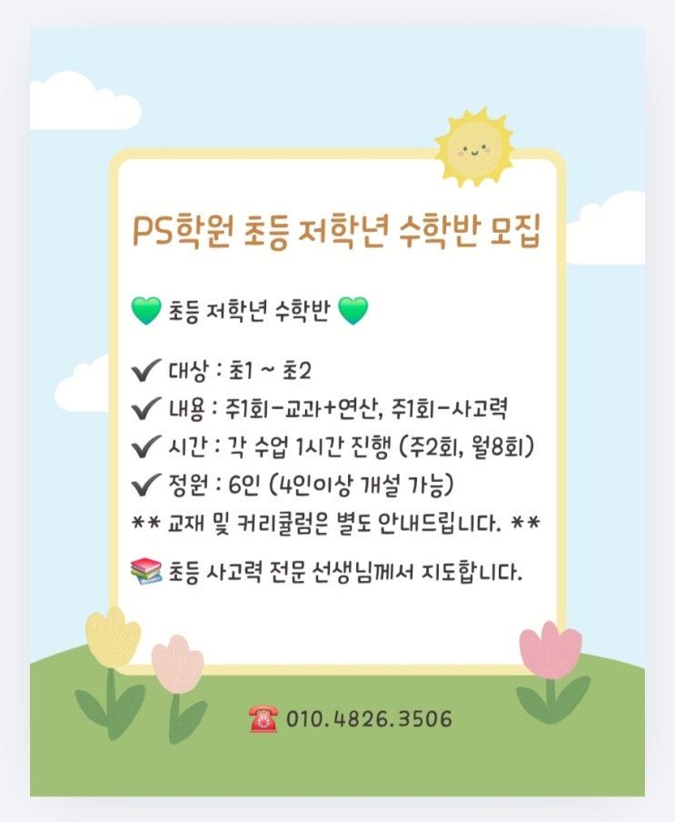 (초1~2) 초등수학반 모집