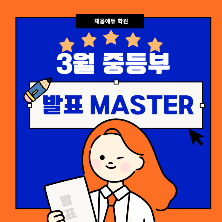 안녕하세요. 선부동 중등학원 채움 에듀학원입니다. 중학교 시기는 학습 난이도가 높아지고 수행평가, 발표, 토론, 서술형 평가 비중이 크게 증가하는 매우 중요한 시기입니다. 이 시기에 단순한 문제풀이 중심 학습만으로는 성적 향상에 한계가 있습니다. 이제는 자신의 생각을 정리하고 표현하는 능력, 그리고 논리적으로 설명하는 능력이 중요한 평가 요소가 되었기 때문입니다. 채움 에듀 중등부에서는 매달 1회 발표 master 수업을 진행하고 있습니다. 이 수업은 중학생 시기에 반드시 필요한 자기주도 학습 능력과 사고력, 자신감을 동시에 키우기 위한 핵심 프로그램입니다 중학생 시기, 발표 경험이 더욱 중요한 이유 중학교에 들어가면....... <img src="https://blogthumb.pstatic.net/MjAyNjAzMzBfMjMy/MDAxNzc0ODYxMTE5MzU3.9xasggSL7oZThtYPn7SbaJ1jqakSTr4zf-3B0sKWgukg.bQAvqy6yMhm5-0nA7T5h8nPHfxeUkJxuH2RTwBxUFBUg.PNG/%BC%B1%BA%CE%B5%BF%C7%D0%BF%F8_%C3%A4%BF%F2%BF%A1%B5%E0_%C1%DF%B5%EE_3%BF%F9_%B9%DF%C7%A5%BC%F6%BE%F7.png?type=s3" />