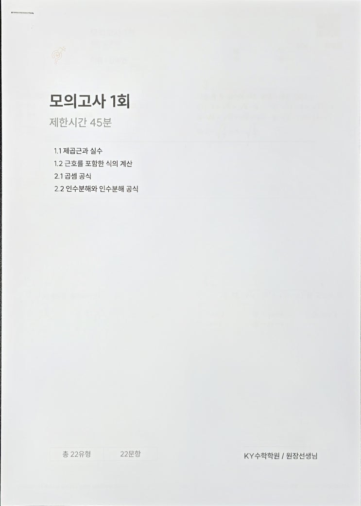 안녕하세요, KY수학입니다! 본격적인 내신 시험 대비가 시작되었습니다. 우리 중등부 학생들도 목표 점수를 향해 뜨겁게 달리고 있는데요. 시험장에서 가장 많이 나오는 아쉬운 목소리, "시간이 부족해서 아는 문제를 못 풀었어요." KY수학은 이 문제를 해결하기 위해 1주차 테마를 [스피드: 시간 분배 최적화]로 잡고 훈련 중입니다. 평일: 모의고사 교재 & 매쓰홀릭 답안 입력 훈련 월요일부터 목요일까지 학생들은 내신 대비 모의고사 교재를 집중적으로 풀이합니다. 단순히 문제만 푸는 것이 아니라, 매쓰홀릭 프로그램을 활용해 본인이 푼 답안을 직접 시스템에 입력합니다. 실전 감각 극대화: 학생 스스로 답안을 입력....... <img src="https://blogthumb.pstatic.net/MjAyNjA0MDNfMTc5/MDAxNzc1MjIyODc1MDEz.PLtyy7CdrxllN0yJ4iBKr5b9LmSSZr7M8XIF6KDR-Nwg.L6KtUMlvRJAi2TGw3g1BTokRJlEo13jGlVfFrZPIp1og.JPEG/KakaoTalk_20260403_221955321.jpg?type=s3" />