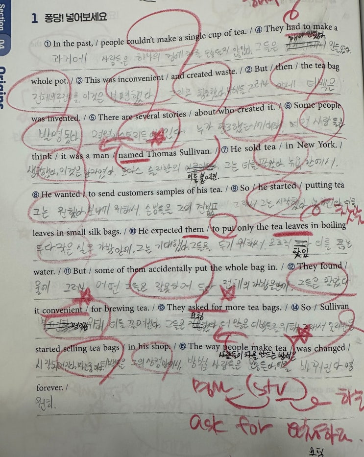 안녕하세요! 오늘은 지난번 '어순' 수업에 이어, 조금 더 깊이 있는 '정확한 직독직해' 수업 후기를 들려드리려고 합니다. 오늘 함께 공부한 친구는 문장을 꼼꼼하게 읽어 내려가는 습관을 지닌 학생이었는데요. 단순히 단어를 연결하는 것을 넘어, 문장 속에 숨어있는 문법적 장치들을 어떻게 해석에 녹여내야 하는지 집중적으로 훈련했습니다. 완벽한 해석을 위한 3가지 포인트 이번 수업에서 특히 강조한 세 가지 핵심 내용을 공유합니다. 1. 한 토막도 놓치지 않는 '꼼꼼한 직독직해' 단순히 느낌으로 해석하는 것이 아니라, 의미 단위(Chunk)로 문장을 끊어 읽으며 앞에서부터 순서대로 정보를 받아들이....... <img src="https://blogthumb.pstatic.net/MjAyNjA0MDNfNDEg/MDAxNzc1MjA3MTg4MDY4.uPGOb7oUgIE1hXKNbgjJwaBfgFlqx49eLPlOKTUBuVsg.VqiEEpiuTONEb7VQHHL0E3BCD1IoNY4yhjmSiQNEfKIg.JPEG/KakaoTalk_20260403_180321633.jpg?type=s3" />
