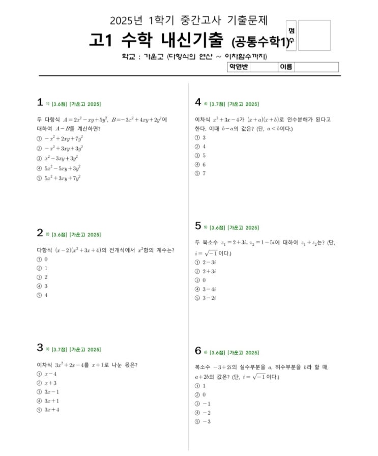 시리즈3.2025년 1학기 가운고 중간고사 기출분석