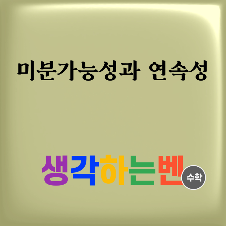 덕소 수학학원 생각하는벤 수학은 단순히 계산의 기술을 넘어, 세상을 이해하는 언어로 기능합니다. 우리가 일상에서 접하는 물리 현상이나 경제적 변화는 연속적으로 이어지기도 하고, 때로는 불연속적으로 급격히 변하기도 합니다. 이러한 변화를 정밀하게 분석하기 위해서는 함수의 성질을 이해하는 것이 필수적입니다. 특히 연속성과 미분가능성은 함수가 얼마나 매끄럽게 이어지고, 그 변화율을 어떻게 측정할 수 있는지를 알려주는 핵심 개념입니다. 예를 들어, 자동차의 속도 변화나 주식 가격의 움직임을 수학적으로 설명할 때 이 두 개념은 실제 세계와 수학을 연결하는 다리 역할을 합니다. 【미분가능성과 연속성】 ▶ 미분가능성과 연....... <img src="https://blogthumb.pstatic.net/MjAyNjA0MDFfMjg2/MDAxNzc1MDA5NjQxNDMz.raAxlxojyKq72uwTmGDbowvhUJWMTASEr6hHnOulWvcg.V6fp62Lq94MkHg34fBTkJFPHrPrhhdo5Y7FAkmeDb2gg.PNG/%C1%A6%B8%F1%C0%BB-%C0%D4%B7%C2%C7%D8%C1%D6%BC%BC%BF%E4__%BA%B9%BB%E7%BA%BB-001_%2822%29.png?type=s3" />