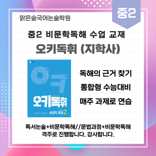 [교육 정보] 중학교 2학년, 왜 학습의 '골든타임'이라고 불릴까요? 안녕하세요. 맑은숲 국어논술 학원입니다. 새 학기가 시작되고 어느덧 본격적인 학습 궤도에 오르는 시기입니다. 특히 중학교 2학년은 ‘학습의 골든타임’이라 불립니다. 1학년 때의 자유학기제를 지나 처음 내신 시험을 경험하고, 고등학교 진학을 위한 준비의 시간이기 때문입니다. 중학교 2학년 시기를 어떻게 보내야 하는지 세 가지 핵심 포인트를 짚어보려 합니다. 1. 독서의 즐거움과 깊이를 누릴 수 있는 '마지막 여유' 중학교 2학년은 문해력을 비약적으로 높일 수 있는 최적의 시기입니다. 단순히 글자를 읽는 것이 아니라, 사실적·추론적·비판적....... <img src="https://blogthumb.pstatic.net/MjAyNjAzMzBfMjc0/MDAxNzc0ODQ4NjgzNDE2.7BvV-6Q_suFpaQJI9OQvV9ejhPDWUVShG6E0qykZrd0g.Qd6KDQNvsx-cvghb7C2hrilXBicH-lsKeGrGqJZkibMg.PNG/%BF%B9%BA%F1%C1%DF2_%BB%F5%C7%D8_%C3%B9_%B1%B3%C0%E7_2026-_%BA%B9%BB%E7%BA%BB_%281%29.png?type=s3" />