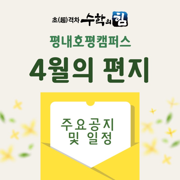 수학의힘 평내호평캠퍼스 2026년 4월의 편지와 주요공지 및 일정ㅣ평내동수학학원 호평동수학학원