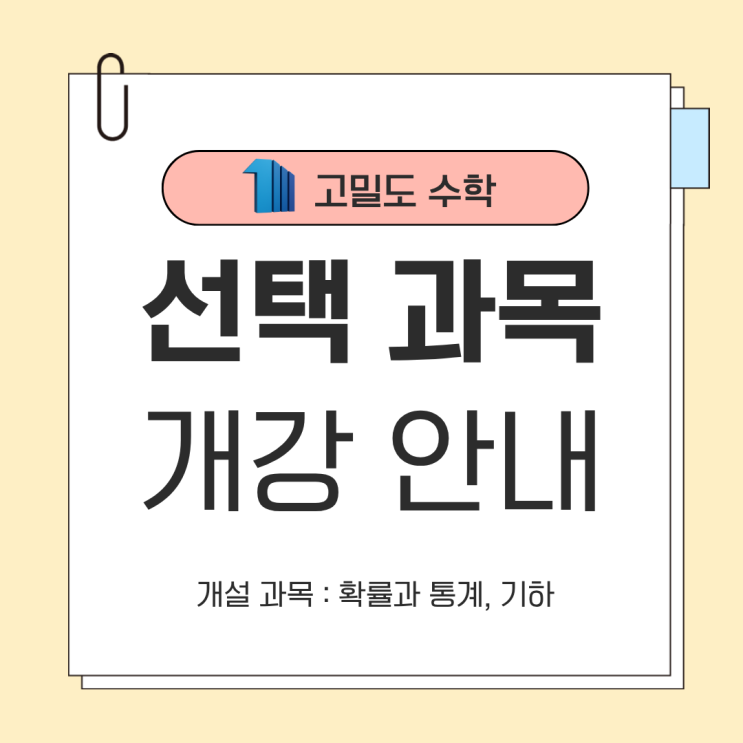 [산본고밀도학원] 수학 선택과목 개강안내 Ⅰ5등급제 상대평가, 준비 방법이 완전히 달라집니다.