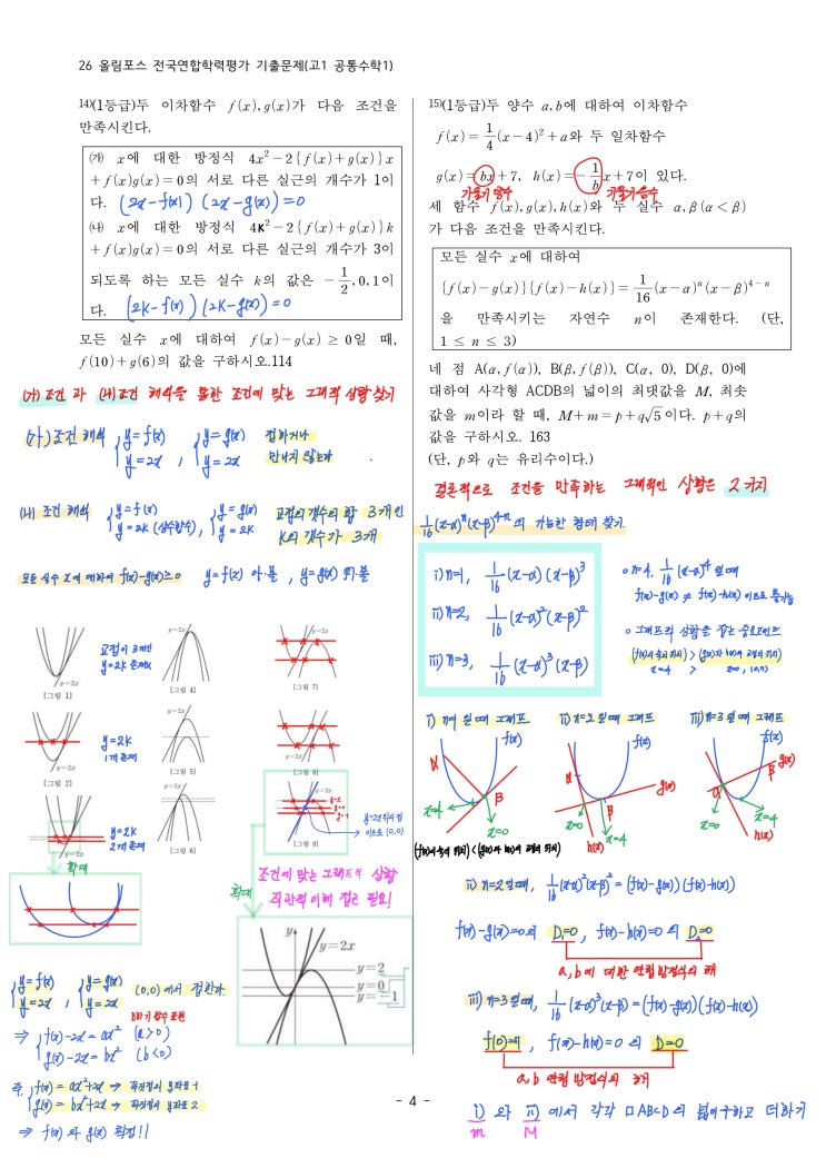 학생중심수업 사고중심수학 1:1 개별맞춤 수학생각학원입니다. 26년 구성고 1학년 1학기 중간고사 학교프린트 손풀이 공유합니다. (시험 범위는 공통수학1 다항식~이차함수 최대최소) 이번 학기 구성고 2학년 학교 프린트는 어려운 문제가 많지 않은데요. (출처 : 올림포스 대수 유형편) 반면에 구성고 1학년 학교프린트는 작년과 마찬가지로 모의고사 4점짜리 소위 킬러문항들이 많이 포함되어 있어 학생들에게 꽤 어려운 학교프린트입니다. 학교프린트 출처는 작년과 마찬가지로 EBS 올림포스 전국연합학력평가 기출문제집 공통수학(고1) 입니다. 작년에도 예상했듯 앞으로 한 동안 구성고는 1학년 학교프린트는 EBS 올림포스 전국연합학력평가....... <img src="https://blogthumb.pstatic.net/MjAyNjA0MDFfMTg2/MDAxNzc1MDA4MzIyOTg0.seolLqNE0NwwNi9p4O2brgfI5fnC2kQTReEBHN6ZYM4g.yWawU-mjAI4c06-HNcD4ZFDgkRkvniuf9yOebZqsSWQg.JPEG/KakaoTalk_20260401_104746219.jpg?type=s3" />