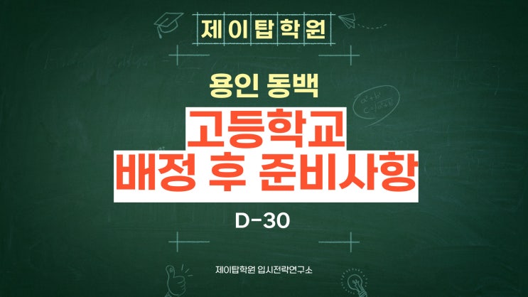 안녕하세요. 제이탑학원 입시팀장 입니다. 지난주 금요일(23일), 예비 고1 학생들의 고등학교 배정 결과가 발표되었습니다. 배정 결과를 보고 난 뒤, 해당 학교에 대해 많이 찾아보셨나요? 주말 동안 교복과 체육복을 맞추고, 입학 준비물을 챙기느라 학부모님과 학생들 모두 분주한 시간을 보내셨을 줄 압니다. 원하던 1지망 학교에 배정받은 학생도 있겠지만, 예상치 못한 학교에 배정되어 마음이 조금은 복잡한 학생도 있을 것입니다. 하지만 분명한 것은, '어느 고등학교를 가느냐'보다 더 중요한 것은 '가서 어떻게 보내느냐'입니다. 고등학교 3년은 중학교 때보다 훨씬 더 촘촘하고 밀도 있게 시간을 써야 합니다. 입....... <img src="https://blogthumb.pstatic.net/MjAyNjAxMjhfMjE2/MDAxNzY5NTYzNjQyODgz.-F17MUC3dX2jyk-1g8xGs3vlT03AQuhZzivrFPCpt3Ig.obqdM-QkeFx5cngM6EiOatv71EP4lstWhchBPSdJfGMg.JPEG/1.jpg?type=s3" />