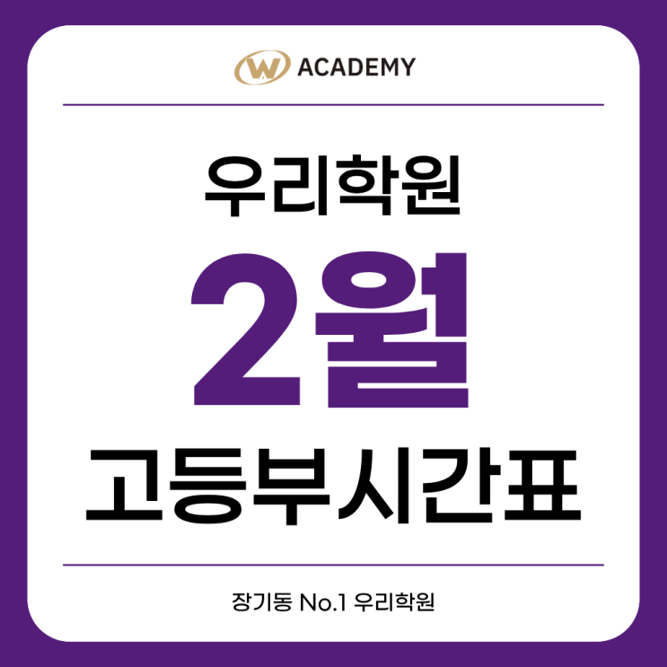 안녕하세요. 김포 장기동 우리학원입니다. 고등 국어 · 영어 · 수학 26년 2월 정규 시간표 안내드립니다. 클릭하시면 선명하게 보실 수 있습니다:) ☆ 초등부 시간표 바로가기 ☆ ☆ 중등부 시간표 바로가기 ☆ https://blog.naver.com/weacademy11/224157422212 [우리 국어_고등부] 김형근, 윤복영, 전형규, 이유수, 김채영 선생님 [우리 영어_고등부] 김건우, 박동빈, 주은영 선생님 고등 영어 내신대비 : 학교별 상이 [우리 수학_고등부] 박제의, 박병조, 홍진태 선생님 ▼ 예비초5~예비중1 비문학,독해력 향상반 특강 ▼ ▼ 우리학원 겨울방학 특강 안내 ▼ ▼ 김포 우리학원 위치 ▼ ▼ 전문적인 입시/학습 상담을 원하시면 ▼ 을 눌러주세....... <img src="https://blogthumb.pstatic.net/MjAyNjAxMjNfMTQg/MDAxNzY5MTYzNzYxODc2.ZcjUkN2dXyVhCMzzipBqmcTHAFFZ3M3G0wK6x4wwp9sg.7A_gvimntXCAQ-iR4x0s1ybOC1PxecQIN39JsJ2x2tog.PNG/3.png?type=s3" />