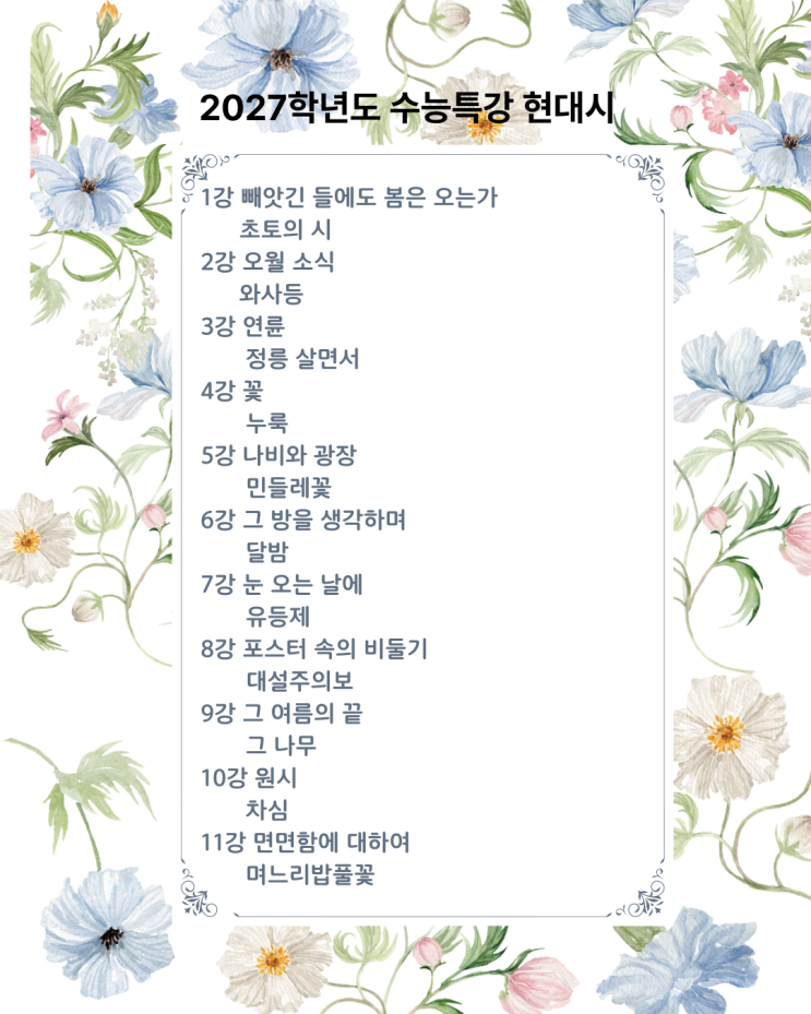 이번주부터 ebs문학 수능특강 바로 들어갑니다!! 선생님도 열공! 학생도 열공!!! 자료에 기대지 않고 스스로 해석하는 힘을 길러야 독해력과 사고력이 신장됩니다. 국어는 사고력을 평가하는 과목입니다. <img src="https://blogthumb.pstatic.net/MjAyNjAxMjhfMTE0/MDAxNzY5NTgwNjUwMDQx.UhRXv3Piio4LF0r2qteNhPbpaQaK4lWbzkWm7HccIecg.eZYo_4G3cnzhwLWMlQensvHt35dOaYT1uYygD0rO5yQg.PNG/%C1%A6%B8%F1%C0%BB-%C0%D4%B7%C2%C7%D8%C1%D6%BC%BC%BF%E4_-001_%2850%29.png?type=s3" />