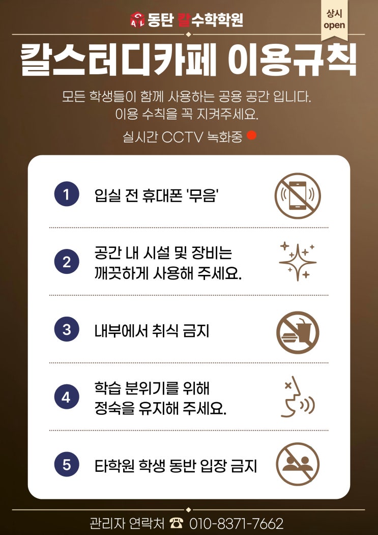 칼수학 스터디카페 & 텐투텐 소개드립니다. 동탄 칼수학 스터디카페는 하교 후 또는 수업 전에 공부에 집중할 수 있도록 준비했습니다. (현재 스터디카페는 고등부만 사용할 수 있습니다) 텐투텐 이용방법 첫번째. 지문 찍기 칼수학 스터디카페를 이용하는 학생들을 대상으로 개별로 지문 등록 후, 자유로운 출입이 가능합니다. 지문 인식 시스템은 단순한 편리함을 넘어 철저한 보안을 의미합니다. 등록되지 않은 외부인의 출입을 원천 차단하여 아이들이 오로지 공부에만 전념할 수 있는 정숙하고 안전한 환경을 유지합니다. 두번째. 핸드폰 제출하기 공부의 가장 큰 적, 스마트폰 유혹도 칼수학에서는 자연스럽게 이겨낼 수 있습니다. 본....... <img src="https://blogthumb.pstatic.net/MjAyNjAxMjlfMTYg/MDAxNzY5NjY0MDg3NTc3.P0XJE4lT9EhvnEG5Zn8vzbAqeci2nmc12RoxXiGoSPog.TTilhmDLHZMDtGf2_fKL8R6fqWXYTUYAWF83Akw2WqYg.JPEG/%C1%A6%B8%F1%C0%BB_%C0%D4%B7%C2%C7%D8%C1%D6%BC%BC%BF%E4._%2842%29.jpg?type=s3" />