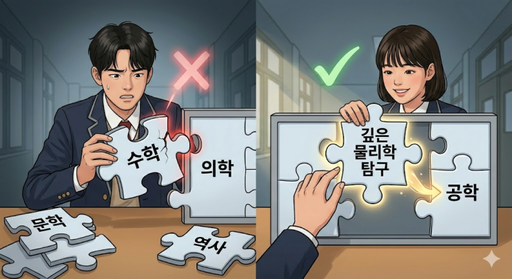 고등학생 · 학부모가 꼭 알아야 할 “입시 오해 4가지” 입시를 준비하다 보면 카더라 정보, 선배 말, 인터넷 글들 때문에 오히려 방향을 잃는 경우가 많습니다. 특히 생기부(학교생활기록부)와 관련된 오해는 학생의 전략 자체를 완전히 틀어버릴 수 있습니다. 오늘은 많은 학생들이 믿고 있지만 사실은 잘못된 대표적인 입시 오해 4가지를 정리해드립니다. 오해 1. “동아리는 다양할 수록 좋다?” -> 진실: ‘다양성’보다 ‘맥락과 지속성’이 훨씬 중요 많은 학생들이 “동아리 여러 개 하면 활동이 다양한 거니까 유리하겠지?”라고 생각합니다. 하지만 실제 평가에서는 활동한 개수 보다는 활동의 연결성과 깊이를 더 중요하게 고려합....... <img src="https://blogthumb.pstatic.net/MjAyNjAzMjVfMTE0/MDAxNzc0NDMzMzQyOTM0.uKxlq4O1VR569tWF4hULFDPkgjBk_lltTCKZgnvzvJwg.F3zyeUnYuodo3CnNtEL6EN_5guxCVTa3Q_DrAZmVefIg.PNG/KakaoTalk_20260325_190803950.png?type=s3" />