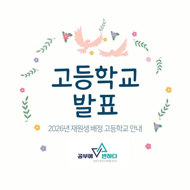 2026년 공부에반하다학원 고1 재원생 고등학교 배정 안내