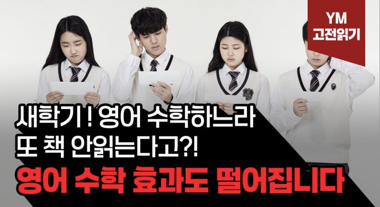 https://youtu.be/4Hd90gui3DQ 새학기, 영어·수학보다 먼저 챙겨야 할 것 — 고전 읽기의 힘 안녕하세요, YM고전읽기입니다. 새학기가 시작되었습니다. 이번 글에서는 새학기를 맞아 학부모님들께 꼭 전해드리고 싶은 이야기를 정리해 보았습니다. 방학 동안 우리 아이들은 이만큼 성장했습니다 방학 기간 동안 한국사, 세계사, 시사특강 등 다양한 특강을 들으며 책 읽기에 힘써 주셨을 텐데요. 고전읽기를 처음 시작한 학생들도 있었습니다. 12월에 첫 책을 시작해 2월 말에서 3월 초까지 퇴고를 마무리한 학생들이 많습니다. 첫 책부터 1,000페이지가 넘고, 등장인물만 30명 이상 되는 대작을 함께 읽는 수업이었기에 결코 쉬운 여정은 아니었....... <img src="https://blogthumb.pstatic.net/MjAyNjAyMjdfODgg/MDAxNzcyMTk0MjI0MDk5.ci6sN6Wa2SjMdMBd1q_uNb1pl0bfQ_2m7bWfhmPmWX4g.DFh0TcoQeC4YwjMOUh5dQy-qNC7F7UBU4yK8eRiVS1Yg.JPEG/photo_2026-02-26_18-13-42.jpg?type=s3" />