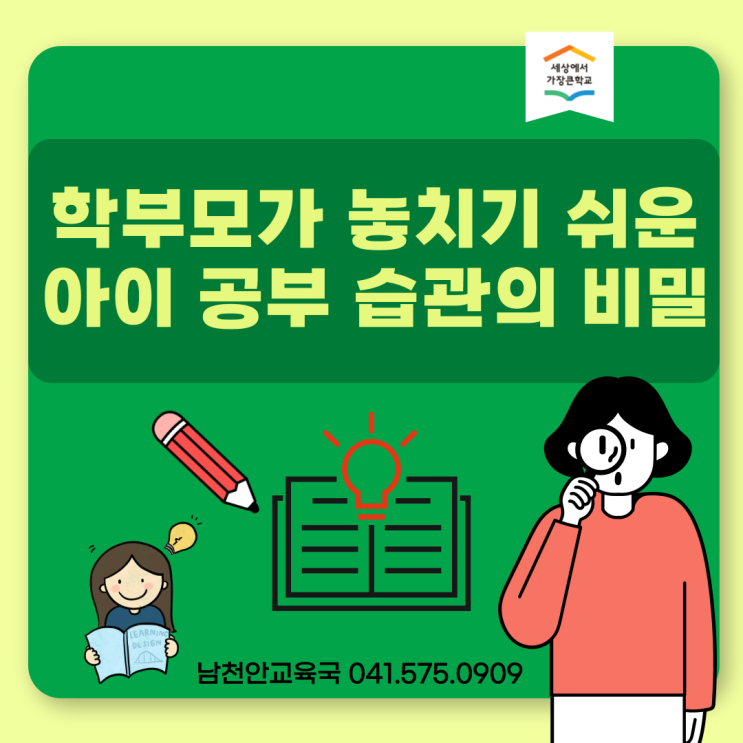 안녕하세요 눈높이 남천안교육국입니다 : ) 아이 공부, 언제부터 어떻게 시작해야 할까요? 아이가 자라면서 자연스럽게 생기는 고민 중 하나가 바로 ‘공부’입니다. 너무 이른 건 아닐지, 혹은 이미 늦은 건 아닐지 걱정하게 되죠. 하지만 교육에서 가장 중요한 건 시기보다 방법입니다. 1️⃣ 공부의 시작은 ‘양’보다 ‘습관’ 많은 부모님들이 “문제를 얼마나 많이 풀었는지”에 집중하지만, 실제로 아이의 학습을 좌우하는 건 공부 습관입니다. ✔ 정해진 시간에 책상에 앉는 연습 ✔ 짧은 시간이라도 집중하는 경험 ✔ 끝까지 해냈다는 성취감 이런 작은 경험들이 쌓여 아이에게 공부는 힘든 일이 아니라 일상이 됩니다. 2️⃣ 아이....... <img src="https://blogthumb.pstatic.net/MjAyNjAxMjZfNyAg/MDAxNzY5NDEwMzc0Njk4.8aPRDgs3AE78lhLI0_FTqi603S2ezWd33fZUGJKjqJcg.0SLuNRTMPPlYinT9y1wdJZ4kiKNOSCKVYWrMHPy9G7cg.PNG/%C1%A6%B8%F1%C0%BB-%C0%D4%B7%C2%C7%D8%C1%D6%BC%BC%BF%E4_-001_%2843%29.png?type=s3" />