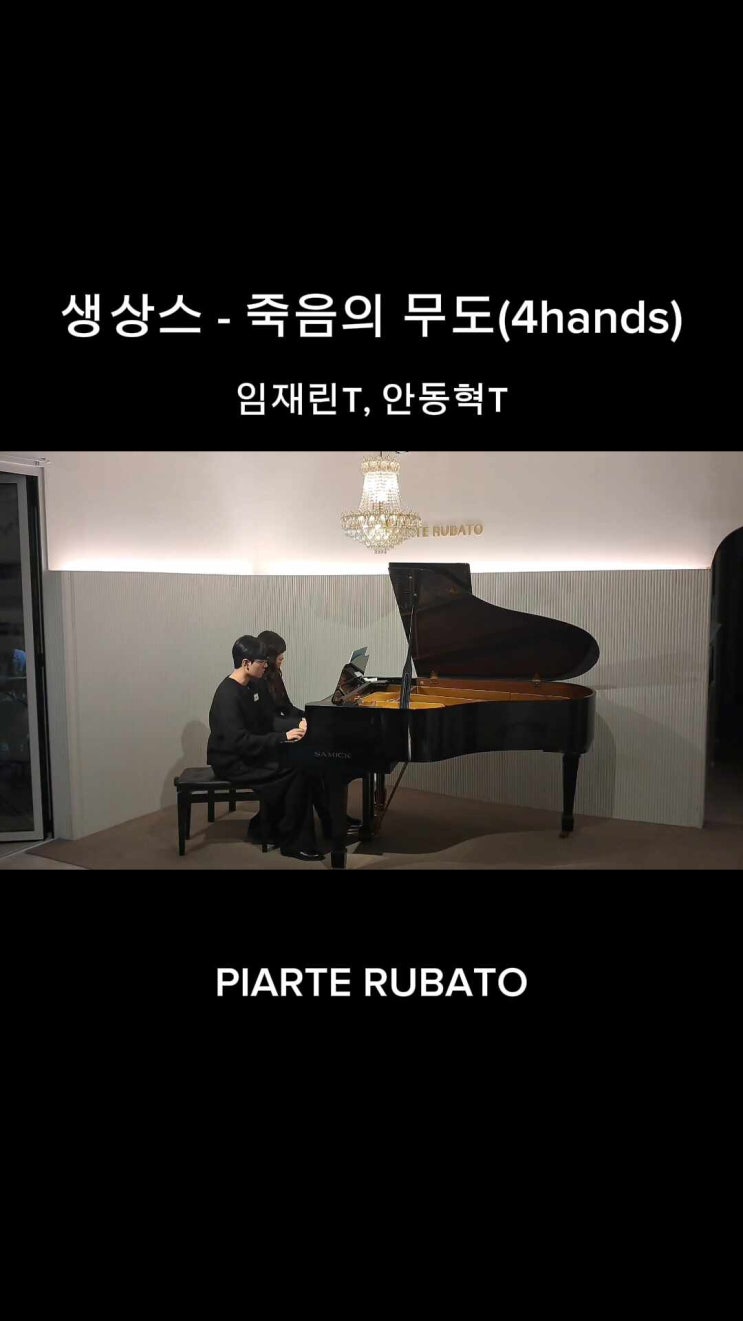 안녕하세요 :) #천안성인피아노 피아르테 루바토입니다! 이번에는 피아노 선생님 두 분의 포핸즈(4hands) 연주 영상을 소개해드립니다 이번 연주 영상은 ✨임재린T, 안동혁T✨의 포핸즈로 연주된 긴장감이 점점 고조되는 곡, <생상스 - 죽음의 무도> 입니다. 한밤중, 죽음이 깨어나 춤을 시작하는 순간 이 곡은 자정이 되면 죽음이 나타나 바이올린을 켜고, 그 소리에 맞춰 해골들이 하나둘 깨어나 춤을 추는 장면을 그린 작품입니다. 처음에는 다소 기묘하고 긴장감 있는 분위기로 시작하지만, 점차 빠르고 역동적인 흐름으로 이어지며 마치 하나의 이야기처럼 전개되는 것이 특징입니다. 영상 함께 감상 해보실까요? 이번 연주는 두....... <img src="https://phinf.pstatic.net/image.nmv/blog_2026_03_20_3133/HIGLhCxmyW_03.jpg?type=f480x480" />