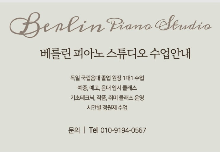 . 내포 베를린 피아노에서 수업을 시작한지 어느덧 2주차가 되어갑니다. 오랜 시간 가르치고 싶어 애가 탔던 홍동 어린이들을 비롯하여 새로 만난 내포 귀요미들과 아주 열심히 수업하고 있어요. 전공반 학생들도 조금 더 편하게 수업하게 되어 마음이 참 좋습니다~ 이 모든 시간과 여건을 허락하신 하나님께 매일 감사하는 날들이에요~ 내포에서 커가는 우리 보석들도 기대해주세요~♡ 베를린 피아노 스튜디오 (등록번호:546) Grundstufe(입문 과정 18만원) Mittelstufe(테크닉 과정 20만원) Oberstfe(전문 연주 과정 25만원) 각 시간별로 약간명 등록 가능합니다. 문의 : 010-9194-0567 #내포초피아노 #홍성피아노입시 #예산피아노입시 #당....... <img src="https://blogthumb.pstatic.net/MjAyNjAzMjRfMjAw/MDAxNzc0MzE3Mzk2MTc1.oPeD-QGW3bJjUgQQ7zSI84lp-YoLUeBzjtMPAMBnVHog.-s-6xQ2u2qUB4MP2HwJLWM1NVCflPpNRcRvSL7PKFV8g.JPEG/900%A3%DFScreenshot%A3%DF20260324%A3%DF104013%A3%DFAdobe_Acrobat.jpg?type=s3" />