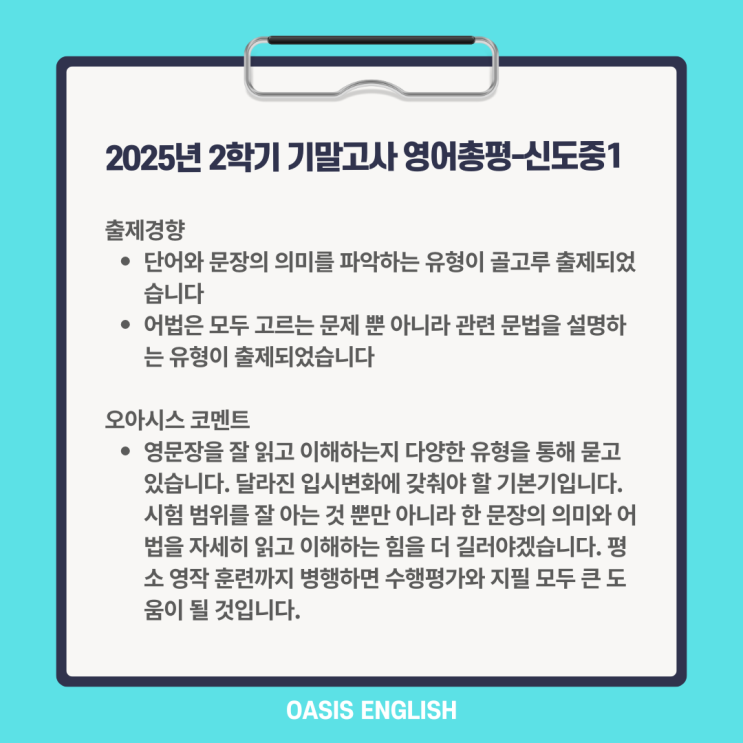 2025년 2학기 기말고사 영어총평-신도중1