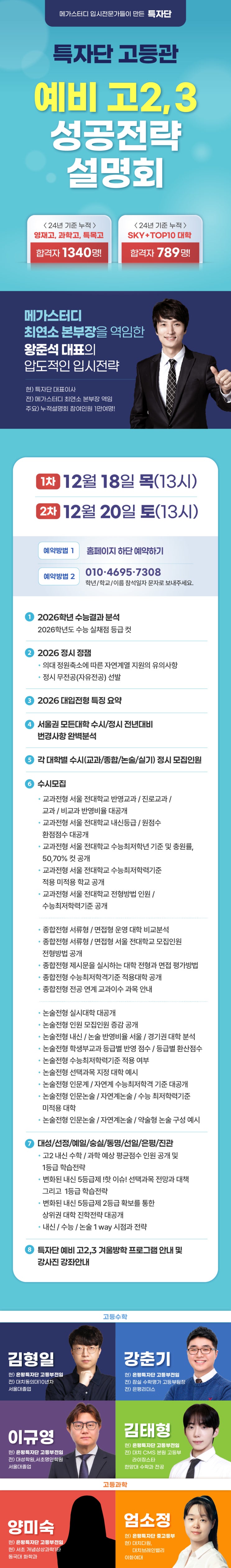 특자단 은평 고등관 = 고2,3 대입합격전랴설명회