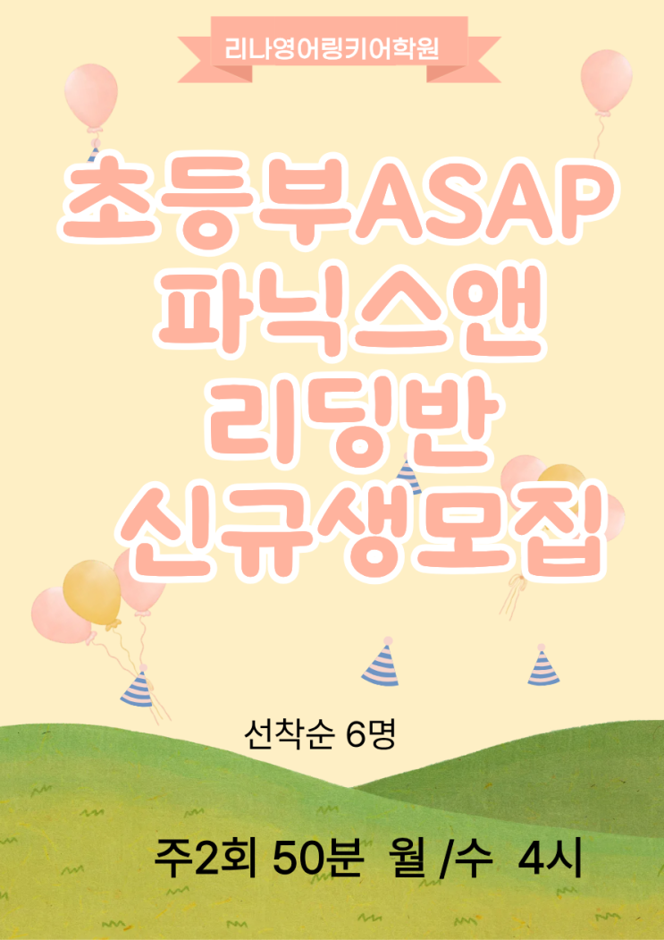 안녕하세요. 전주 혁신나슬기영어학원입니다. 지난 1, 2월에 파닉스반으로 영어를 처음 시작했던 우리 신입생 친구들이 어느덧 학습 2달 차에 접어들었습니다. 그동안 알파벳과 소리의 규칙을 열심히 익힌 우리 아이들에게 이번 달부터 아주 특별하고 중요한 미션이 주어집니다. 바로 매일 '영어 원서 1권 읽기' 숙제입니다. 1. 파닉스 교재만 달달 외우지 않습니다. https://blog.naver.com/na_english/224135441881 파닉스를 배운다고 해서 파닉스 규칙만 반복해서 학습하지 않습니다. 저희 학원에서는 메인 파닉스 수업과 더불어 'From Phonics to Reading A'를 부교재로 활용하여, 그날 배운 소리를 문장 속에서 곧바로....... <img src="https://blogthumb.pstatic.net/MjAyNjA0MDFfNzAg/MDAxNzc1MDI1NDQzNzQ0.MESSwF4BOhk-dL5ecXIw6FnGwCbWJ-WSMDR-tlIT3I0g.1YVTBb-2kUsQTaq_X7UW9q_uwu8ljPC0cMu6UI9SVIwg.JPEG/%C0%FC%C1%D6%C7%F5%BD%C5%B5%B5%BD%C3_%BF%F8%BC%AD%C6%C4%B4%D0%BD%BA_%284%29.jpg?type=s3" />